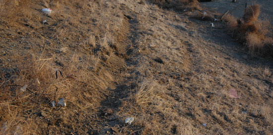 - Vehicles in a yaw – on dirt such as an unpaved shoulder or embankment often create furrows. Furrows are caused by the wheel/tire assembly with a sufficient yaw angle to plow the soil. Furrows often precipitate the trip point, observed in the foreground of Photo 2 (see page 96). These furrow marks were created when a light truck left the highway and traveled down a dirt embankment prior to rolling over.