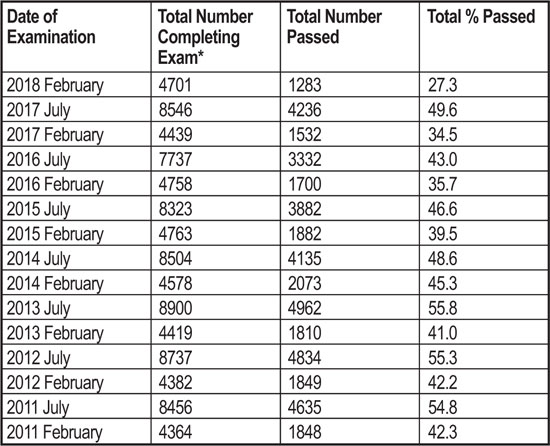 Historically, the number of exam-takers in February is 50 percent less than those taking the Bar in July. And, the passage rate in the spring has been dramatically lower than in July. Some studies have found that the lower February passage rate is from second-time takers who did not pass the July Bar, applied to retake the test in February, and were unsuccessful again.