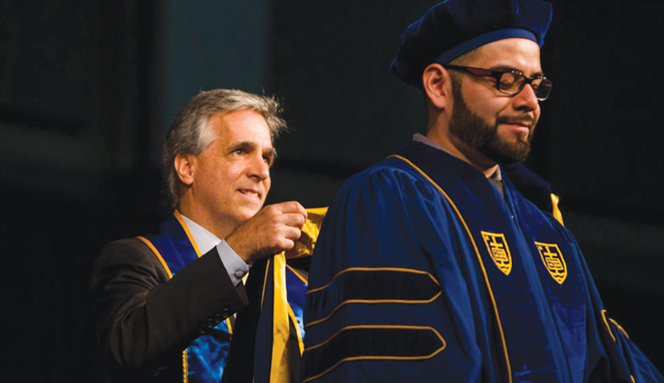 In the same vein, Pedro happily participated in this special Notre Dame tradition and made sure to present Judge Brandolino with a stole to wear at his graduation. Pedro shares: “Graduating from law school was a dream come true. . . The power lunch was the first step in a large chain of events that allowed me to be where I am right now. I am very fortunate to have Judge Brandolino in my life. He is an amazing mentor, a role model of mine, and one of my dearest friends. He always tells me that my success is a product of my hard work, but I would not be here without him. He always makes time to give me guidance and advice in difficult times and has done so in the middle of a busy day on multiple occasions. He believes in me and in my dream of becoming a member of the legal profession in Los Angeles. He is a great judge and an even greater person.” As for Judge Brandolino? He could not have been prouder as he hooded Pedro at the graduation ceremony.