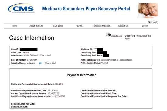 Once you receive the rights and responsibilities letter, you will have the CMS-assigned Case ID which you will need to access the Medicare Secondary Payer Recovery Portal (MSPRP). The MSPRP, unlike the Medi-Cal portal, requires you to register for access. Before a new user can register, the corporate or representative entity must complete the initial registration process for the MSPRP account. The registration process is cumbersome but well worth it once done.