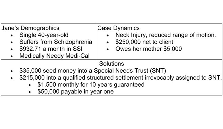 It’s also important to address the threat of misappropriation. Many clients on means-tested benefits have never possessed a large sum of money. This inexperience can result in hard-fought settlements being spent down quickly or misappropriated. A structured settlement is commonly utilized to ensure the funds last over a designated term selected by the client, but this does not protect a client from spending payments inappropriately or from taking poor financial advice from friends and relatives.