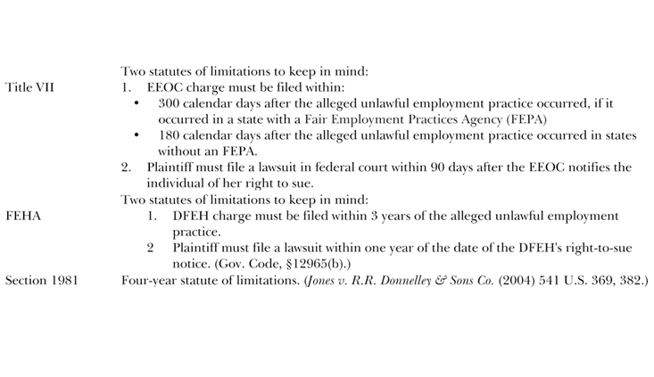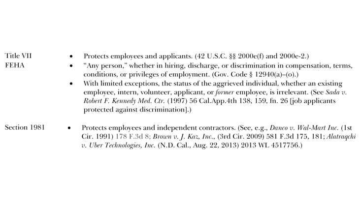 Broadly, although all three statutes prohibit discrimination in employment based on race, there are differences between these laws that can affect your case significantly.