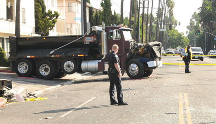 I obtained the traffic-collision report and noticed the LAPD took numerous photos at the scene. These were all ordered, as well as the local news footage from a helicopter that covered the scene. The traffic-collision report placed all the blame on the dump truck, which investigation revealed, had not had its tires properly chocked at the job site.