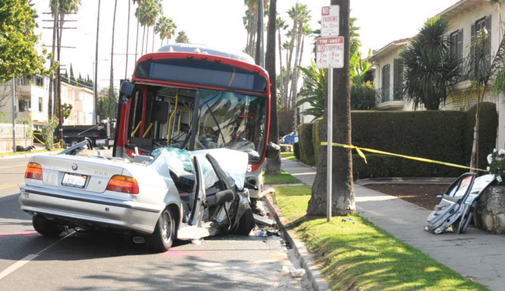 The Segal case involved a mother/wife, who was taking her daughter to middle school one morning on Hollywood Blvd. in Los Angeles. Unbeknownst to her, there was an overweighted dump truck parked at a residential job site that was uphill on a side street that intersected with Hollywood Blvd. The dump truck became a driverless runaway; it started to slide down the street, downhill towards Hollywood Blvd., at about 7:30 in the morning without anyone in the cab. As the dump truck picked up speed on the downhill slope, it came into traffic across Hollywood Blvd. At the same time, an MTA bus was coming up Hollywood Blvd., loaded with morning commuters on their way to work. The dump truck hit the MTA bus about midway behind the front passenger door. The bus then went across the center line and hit my client head on in her BMW at 38 miles per hour.