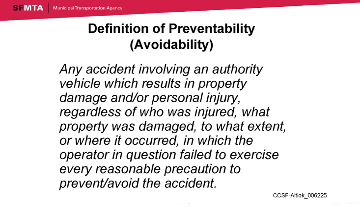 In the same case Muni investigators arrived at the scene. Police body-cam video identified five investigators, yet S.F. Muni only identified three. This inaccuracy contributed to the overall impression that S.F. Muni conducted a sloppy investigation, which was not aimed at determining the truthful cause of our client’s injuries.