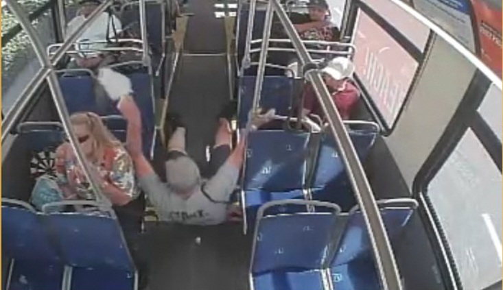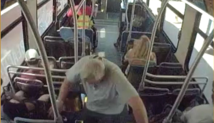 The photos above are screen shots from an OCTA bus where the driver had to make a panic stop when he was pulling away from the curb – while our elderly, disabled client was still walking toward a seat.
