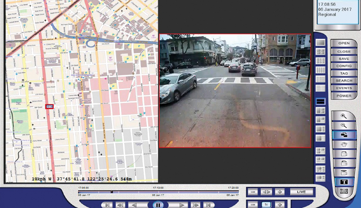 Learn how to operate and navigate the bus video. The options include a single view with a location and speed side by side: Review each camera for the same moment in time. A camera pointing forward may show a red light but a camera on the same bus pointing in a different direction may show helpful evidence. In one of our S.F. Muni cases, the defense was that our client jumped the light when she began to cross the street. A rear-facing camera showed other pedestrians entering the street on the opposite side at the same time that our client entered the street.