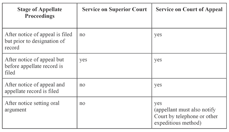 Substituting attorneys is typically straightforward. However, withdrawing as an attorney (resulting in the party continuing the appeal in pro per) requires a motion. California Rules of Court, rule 8.36 provides the procedure for doing so. When the substitution or withdrawal occurs after the notice of appeal has been filed, the substitution of attorney must be effected by order of the appellate court. (Echlin v. Superior Court of San Mateo County (1939), 13 Cal.2d 368, 374.)