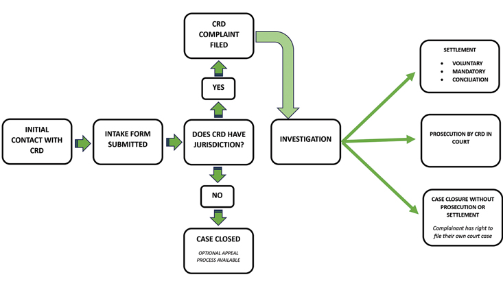 After submission of the intake form and after the intake interview is conducted, the CRD describes its complaint process as follows (calcivilrights.ca.gov):