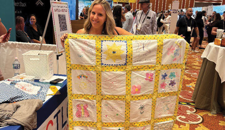 More than 100 people drew or wrote notes on cloth squares that are being transformed into baby quilts for children caught in the legal system. CAALA board member and incoming LATLC president, Megan Klein and her family are assembling the squares into adorable quilts that will be donated to CASA of Los Angeles and CASA of Orange County.