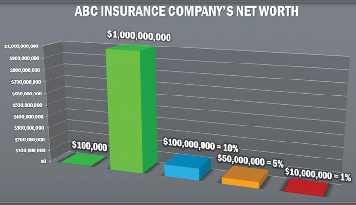 This concept can be visualized with demonstrative graphics (figures 2 and 3 on page 48). The graphics illustrate that while the punitive damages against a large corporation may be a large dollar amount, they are not so large when seen as a percentage of what that corporation is worth.
